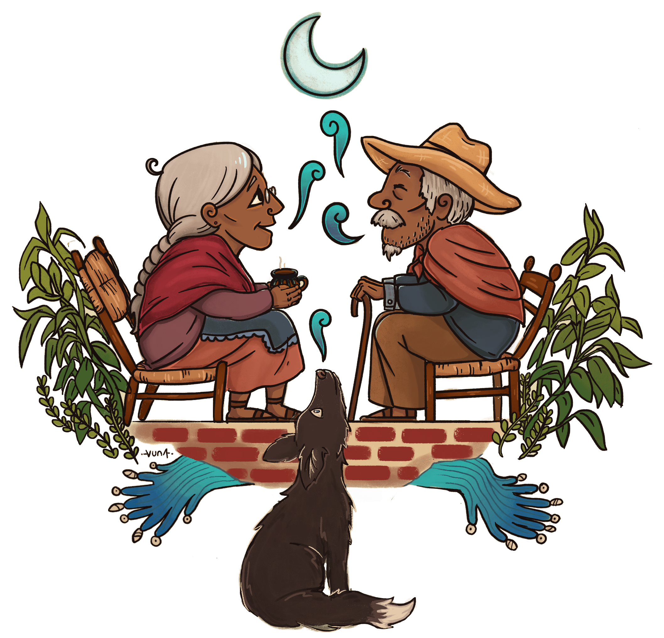 «Doña Cuca” y “Don Rufino” son una pareja de viejitos que saben muchas leyendas de brujas y fantasmas, se les pueden olvidar muchas cosas, pero las historias tradicionales de su pueblo, nunca. Te esperan para compartirte una pequeña parte de su experiencia, mientras beben un rico cafecito de la olla.